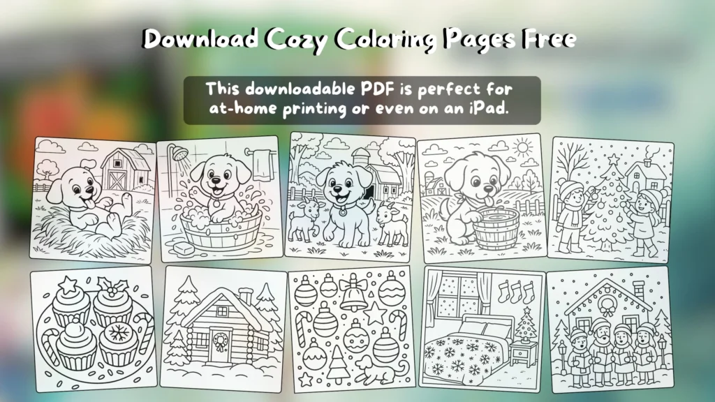 Get Free Printable Coloring Pages Now! Enjoy a free PDF download featuring adorable coloring pages from our best books— Cute Moments of Dogs and Cats, 100 Blooming Flowers, Cozy Christmas Coloring Book, Playful Puppy In farm Coloring Book Download Free Pages